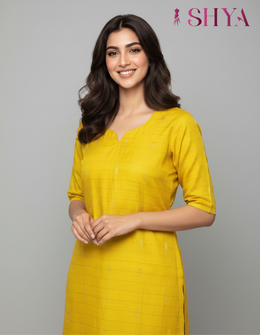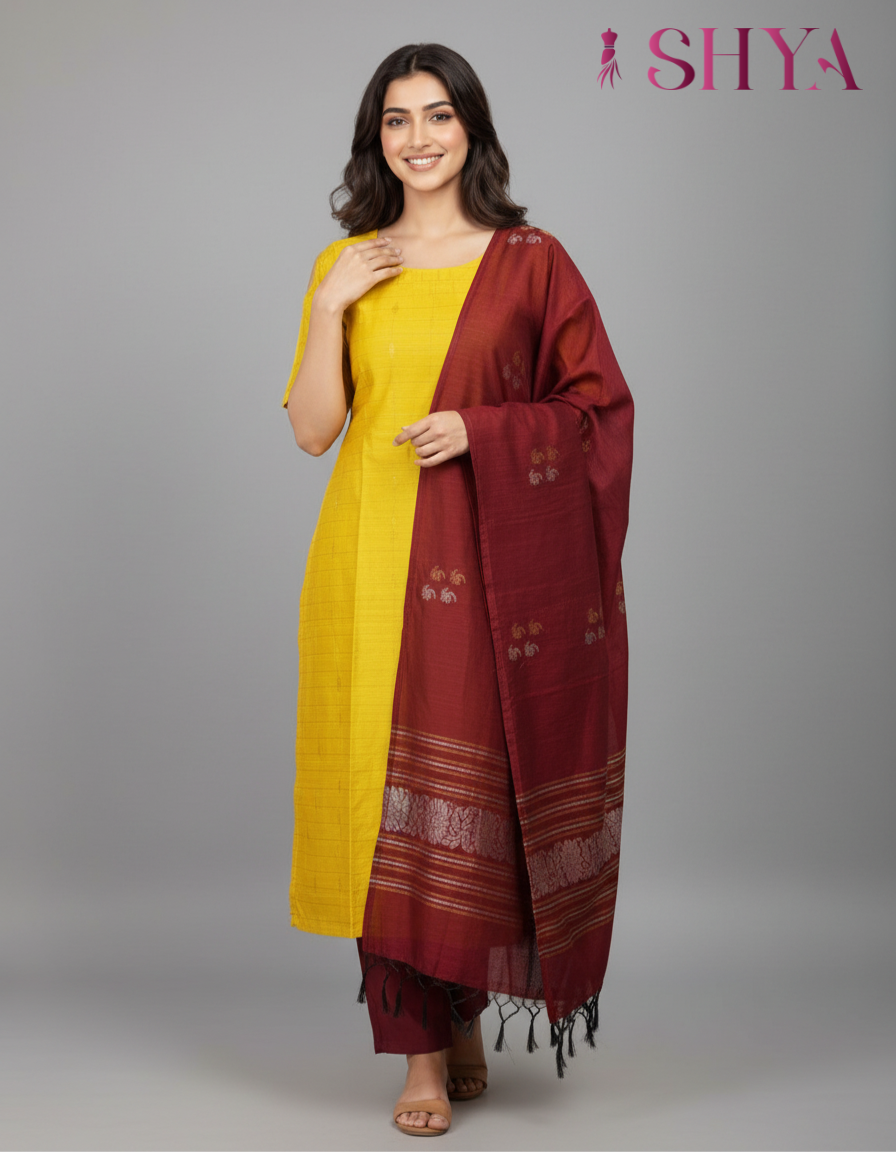 Yellow Raw Silk Kurti Set with Designer Dupatta