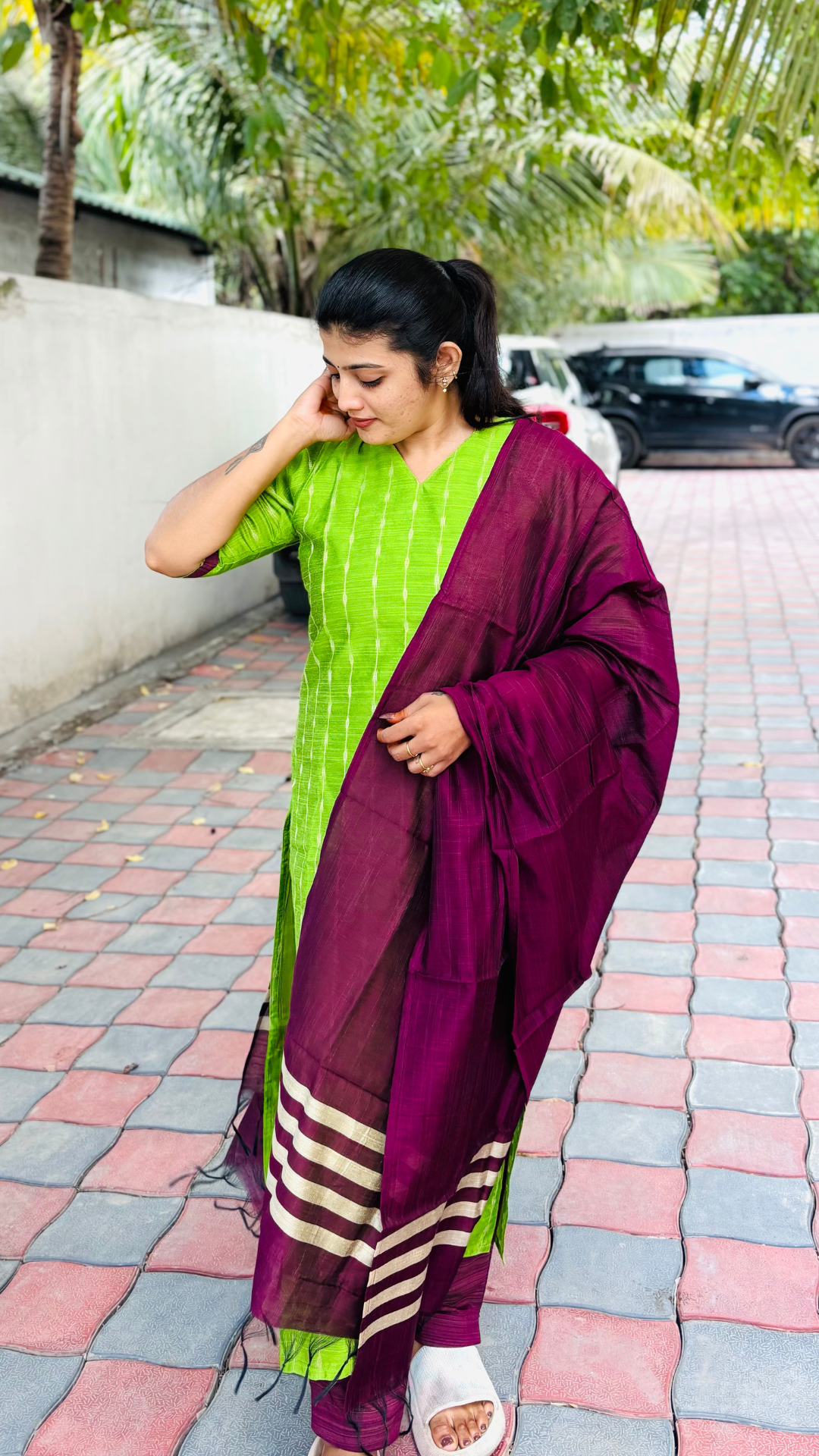 Parrot Green Raw Silk Chudithar Set – Syha Fashion